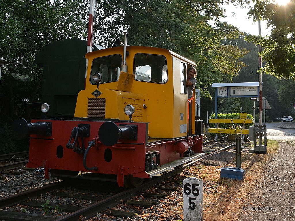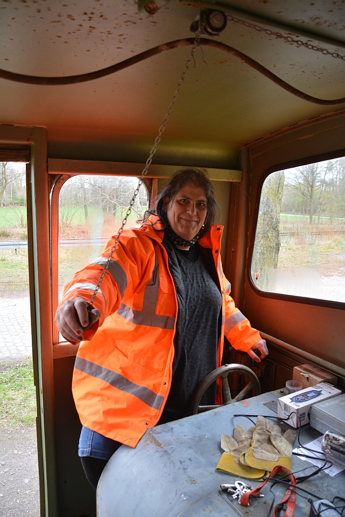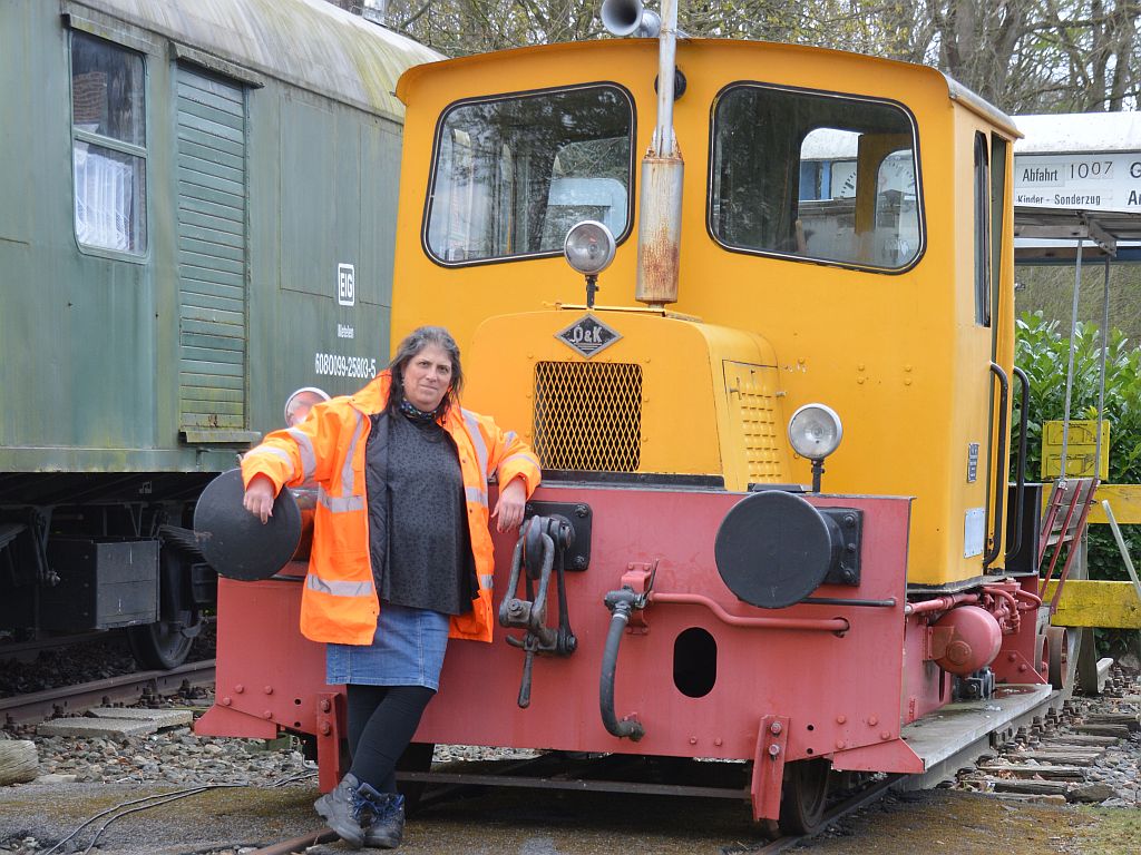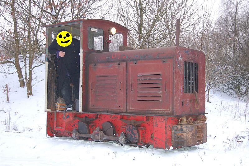 Die Lok, eine O&K Mv2a, bediente ich auch. Leider ist das Getriebe inzwischen defekt. Vmax der Lok mit mechanischem Dreiganggetriebe ist 4/8/12km/h